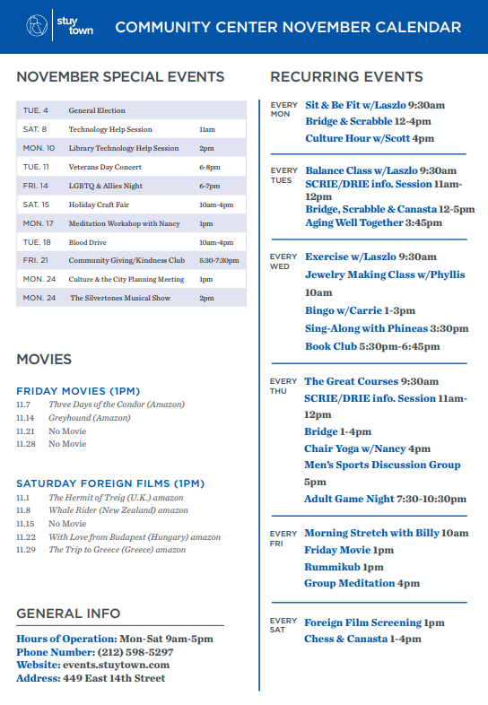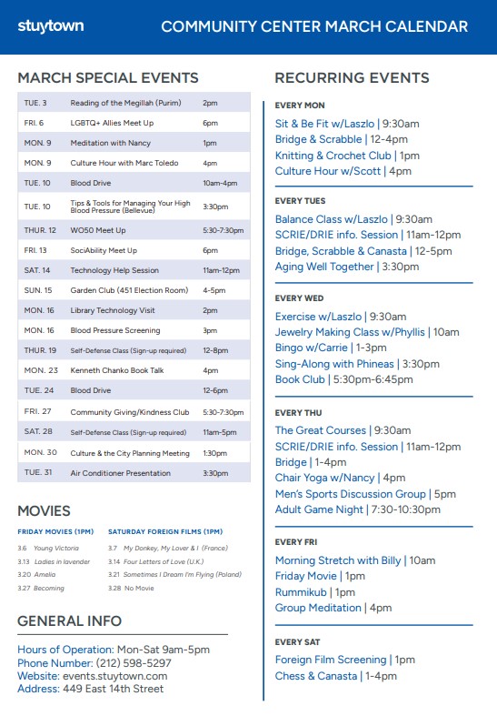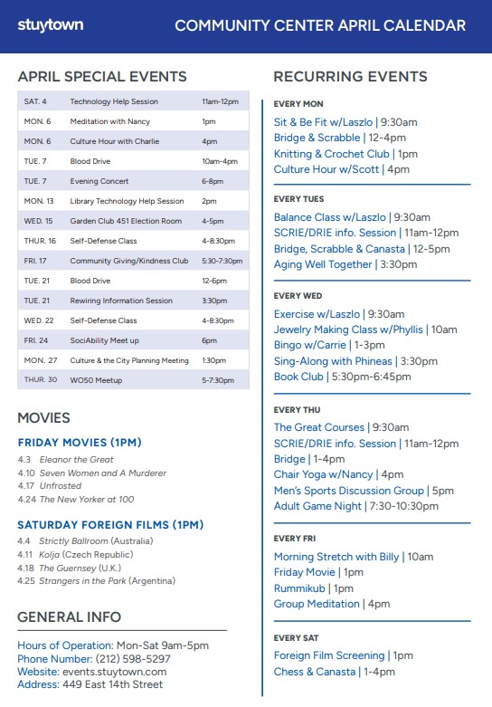 Visit the Community Center for any of these activities - or join virtually using our Community Center zoom Link below. Space is limited to 20 in-person. At this time the Center is for residents only, no outside guests. Please view our calendar below for the full event list. Login Information: https://beamliving.zoom.us/my/communitycenter Meeting ID: 379 895 9785 Passcode: community