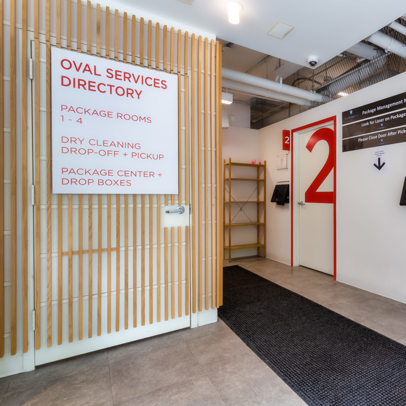 • 24/7 Drop Off: pre-labeled outgoing packages for USPS and UPS, and dry cleaning any time of the day, hassle-free. • 24/7 Pick Up: Get your packages any time from the Smart Package Room, a convenient and exclusive amenity with state-of-the-art technology. Just scan your notification message, open the door, and the laser will point to your item(s). • Everything You Need at Your Fingertips: Access to pet care, handyman, housekeeping, dry cleaning, self-service shipping, key storage, moving equipment rental, co-working space, party reservations, kids playtime, and much more. • TULU: Rent cleaning and sports equipment, gaming consoles, and much more, right on property. The Oval Services location is one of five on property. Visit the others in the rec room and buildings 405, 447, and 535.